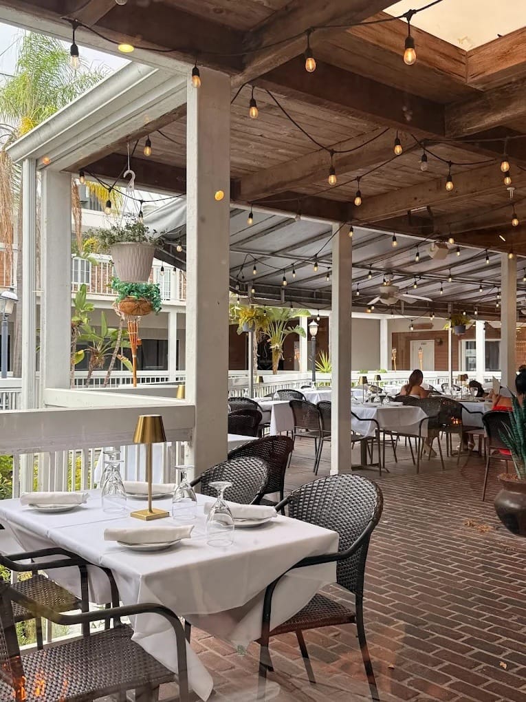The dining room is cozy with white tablecloths and well‑spaced tables. There’s a small bar up front that doubles as the restaurant’s pisco hub. And if the weather cooperates, a handful of outdoor tables extend the room onto a peaceful deck which is the ideal place to enjoy this meal.