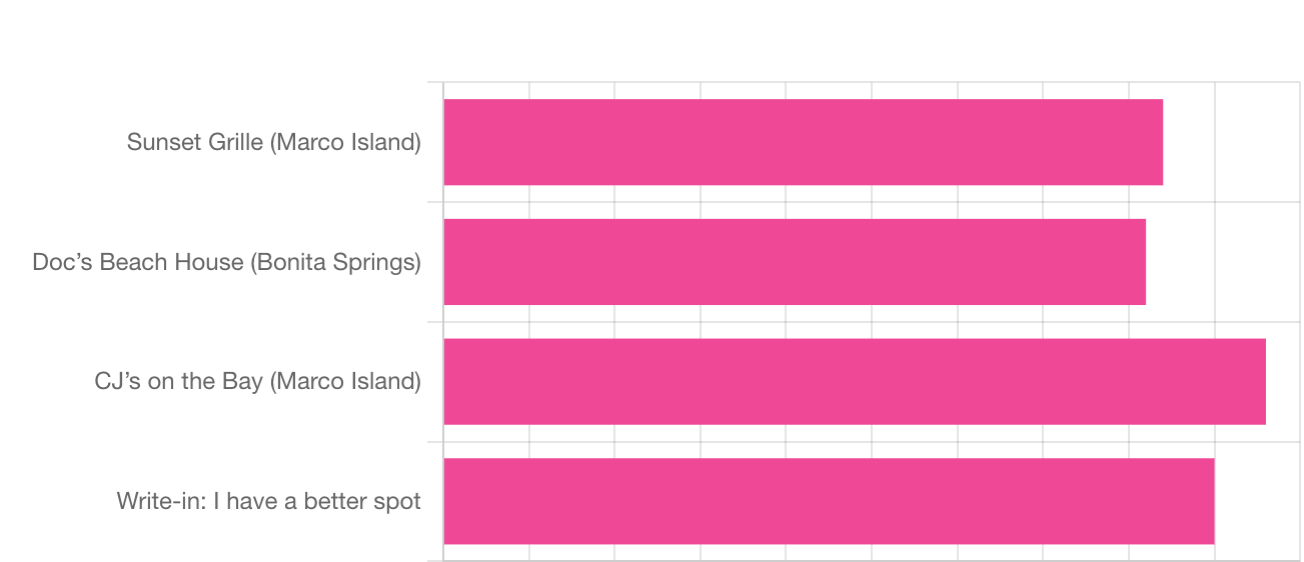CJ’s on the Bay led with 27.27% of votes! You also had great suggestions: