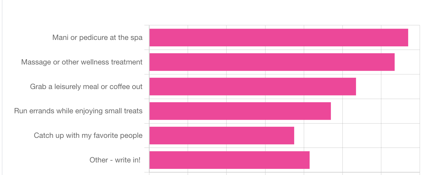 Mani or pedicure at the spa led with 21.61% of votes! Here’s what else readers wrote in: