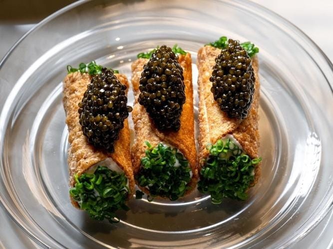 Start with their house-made focaccia and choose from a selection of toppings, like tapenade and pistachio pesto. If you’re going all out, get their caviar cannoli. The steaks are, as expected, the anchor. Oak-fired and deeply caramelized, they arrive properly rested and confidently seasoned. Steak snobs will be impressed by their Prime Delmonico, while seafood lovers can still order an impeccable Branzino over an orange saffron fregola. Just expect fine-dining pricing. Several cuts are finished with a red Lambrusco butter, a nod to Northern Italy that adds richness without overwhelming the meat.