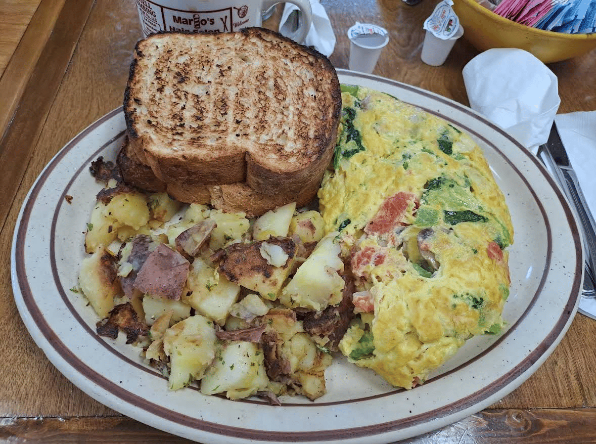 The name says it all: if omelets are your preferred brunch, this should be your top spot. The plates are huge, the fillings are generous, and it’s exactly the kind of no-frills breakfast joint where you can grab a filling meal to fuel your day.