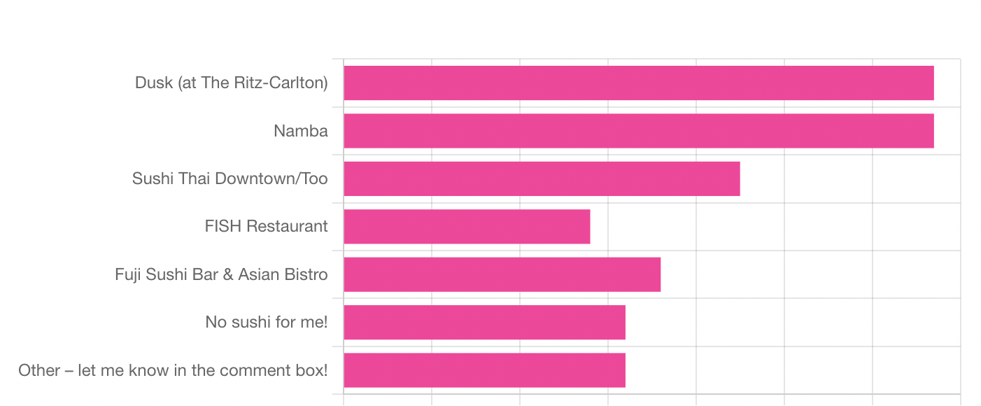 Lots of love came through for Ninja and Sushi One, while Dusk and Namba were tied for first place. Thank you for your responses!
